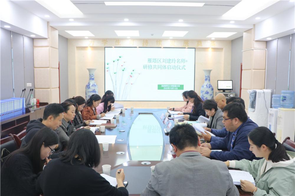 2020年10月12日,小雨微寒挡不住我们的热情。来自雁塔区各个学校的共12位老师,与刘建玲老师齐聚在我校崇是楼,举行刘建玲老师“名师+”研修共同体启动仪式。陕西师大附中副校长高丽文、陕师大贺卫东教授、雁塔区教师进修学校教师史建义、我校教研室主任董翼应邀参加了仪式。...