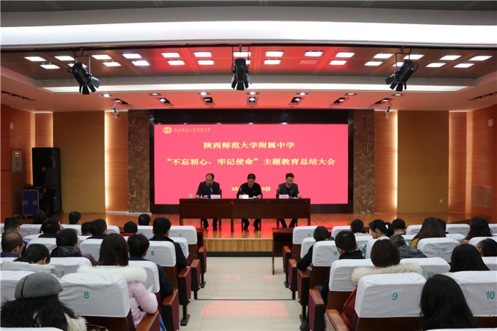 1月10日下午,我校在科技楼一层报告厅召开“不忘初心、牢记使命”主题教育总结大会。附中党委书记陈勇刚,校长、党委副书记冯军,附中领导班子成员及全体党员参会。主题教育校内指导组程永刚同志参加会议。...