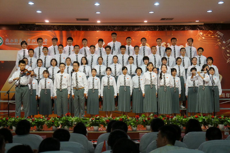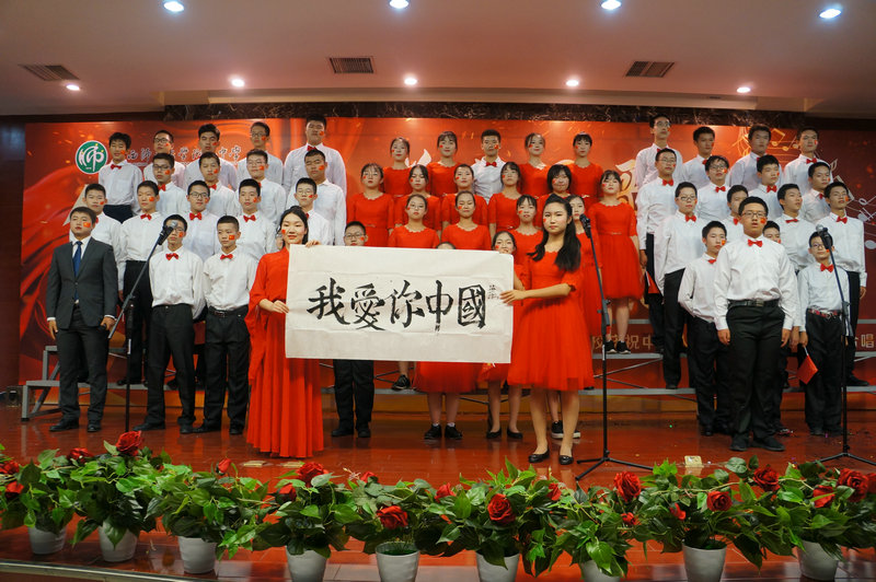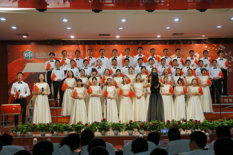首先出场的是张博阳和问丁元老师,他们演唱的歌曲《不忘初心》拉开了此次活动的序幕,两位老师用悠扬的曲调,暖心的歌词,唱出对祖国的颂歌,一句"不忘初心,继续前进,万水千山,最美中国道路",重温了红军长征那段艰苦卓绝的峥嵘岁月,道尽了对祖国和人民的浓浓深情。随后,本部及分校高一年级13个班级分别为大家带来了《我和我的祖国》、《龙的传人》、《国家》、《我们走在大路上》、《我爱你中国》、《爱我中华》、《保卫黄河》、《走向复兴》、《歌唱祖国》等十几首脍炙人口的红色歌曲,在悦耳的音乐中,我校学子身着统一的服装,歌声嘹亮、精神饱满,朝气蓬勃,大家共同讴歌党的丰功伟绩,歌唱今天的幸福生活, 祝福伟大祖国更加繁荣富强,充分表达了我校学子对祖国母亲的热爱和赞美之情,同时也展示了陕西师大附中师生团结一心、求实奋进的良好精神风貌。