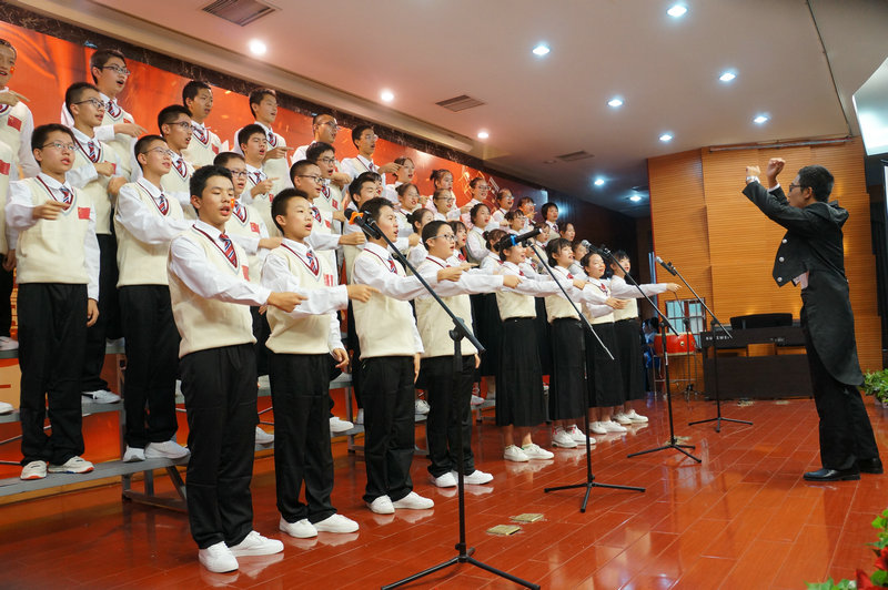 整个合唱比赛持续近两小时,经过激烈的角逐,最终我校高一(4)班荣获一等奖;高一(5)班及分校高一(4)班荣获二等奖;分校高一(2)班、(3)班荣获三等奖。我校张帆副校长及刘晓晴副校长为获奖班级颁发了荣誉证书。最后,全场师生在郭伟老师的带领下,合唱歌曲《歌唱祖国》,为此次合唱比赛画上了完美的句号。