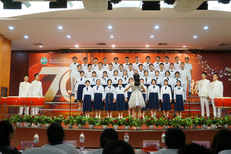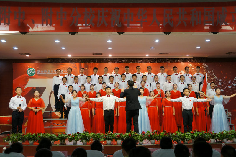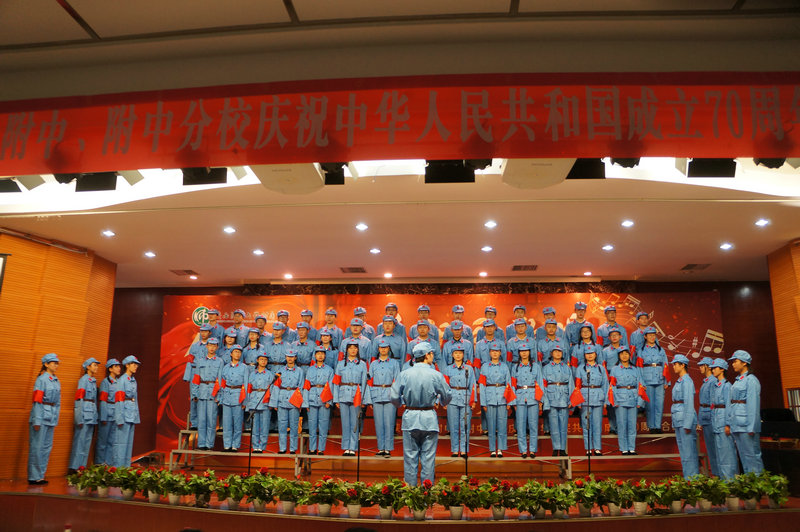 为隆重庆祝中华人民共和国成立70周年,唱响主旋律,激发我校师生的爱国热情,增强附中学子的集体荣誉感和班级凝聚力。值此国庆来临之际,我校政教处于2019年9月25日在综合楼报告厅举行“为祖国歌唱•让梦想飞扬”——庆祝中华人民共和国成立70周年合唱比赛。陕西师大附中张帆副校长、附中分校刘晓晴副校长以及部分中层领导和我校高一年级全体班主任和学生参加了此次活动,张帆副校长、刘晓晴副校长、音乐老师郭伟、薛琪、张博阳、刘霄、政教处副主任鲍青青、索海峰、符洁、分校高一年级组长包武老师担任了此次活动的评委。