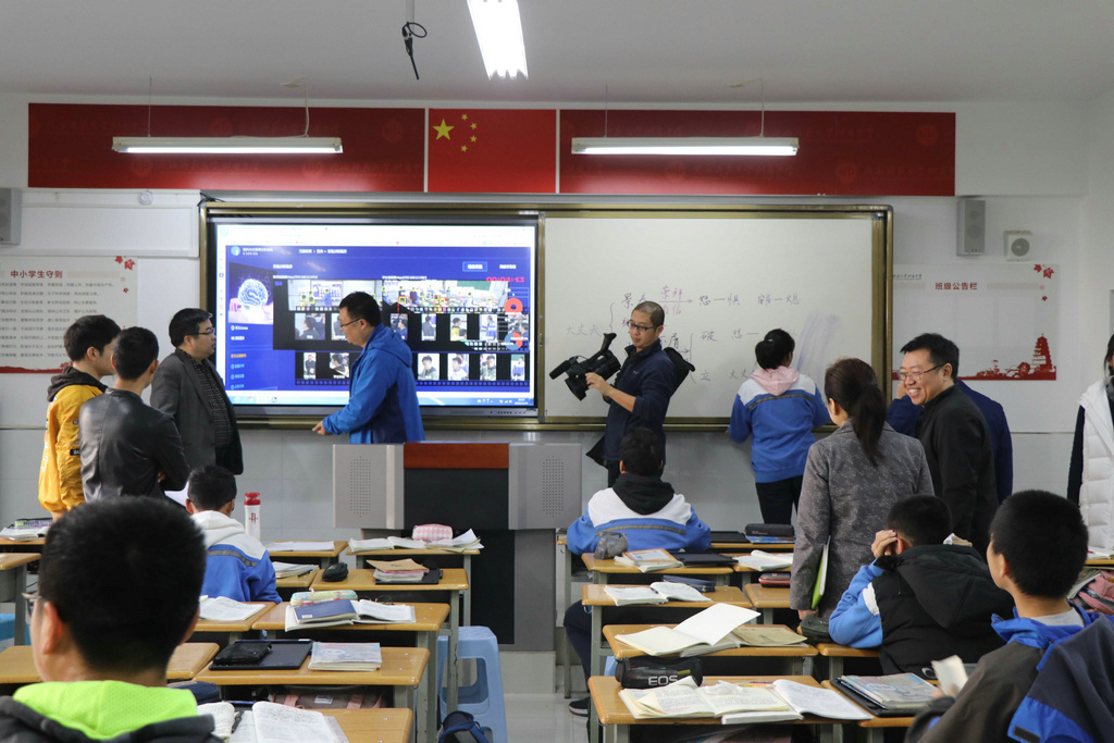 随后所有与会人员在附中崇是楼会议室参加“智慧校园工作汇报” 会,首先由冯军校长至欢迎词,并简要介绍我校智慧校园的建设思路,马立主任就师大附中的智慧校园建设情况从机制保障、智慧环境、智慧教学、教学资源、智能治理等五个方面予以汇报,附中王芳、曾文静、程自顺、温晓雷、李云海、郭宏宇等一线教师汇报智慧校园环境下对教师教学的影响,教师们普遍认为教育信息化对教学交互便捷性、高效性有新的体会,同时认识到教育信息化有助于开创新的教育模式提高教学成效,最后邀请学生展示个人在智慧校园环境下的学习成果。