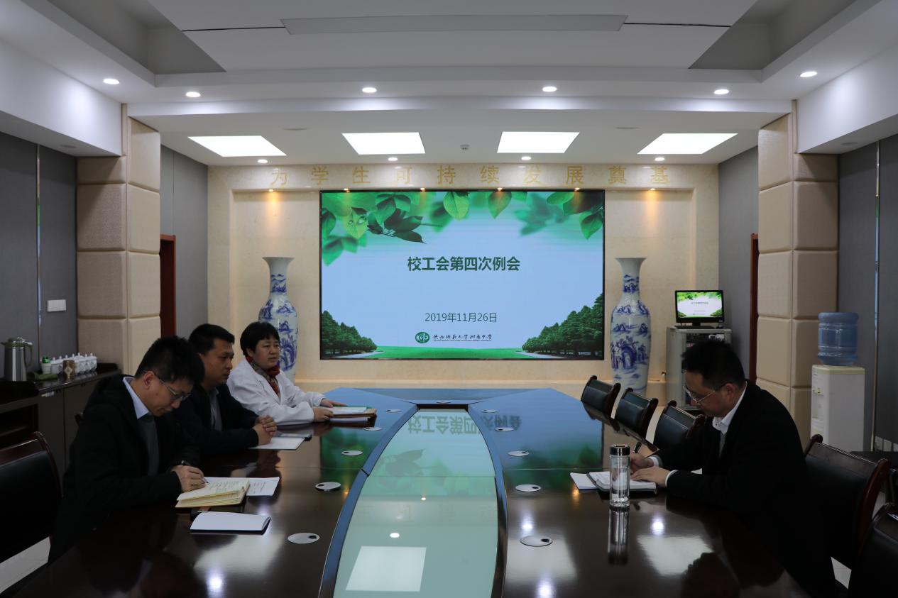 2019年11月26日上午,校工会召开第四次工作例会,我校党委书记陈勇刚,工会委员郭文辉、张缨、李炜参加了会议。会议由陈书记主持。陈书记认真听取了三位工会委员关于最近工会相关活动的开展情况汇报,就我校教职工体检及本学期后期工会工作做了详细的安排部署。