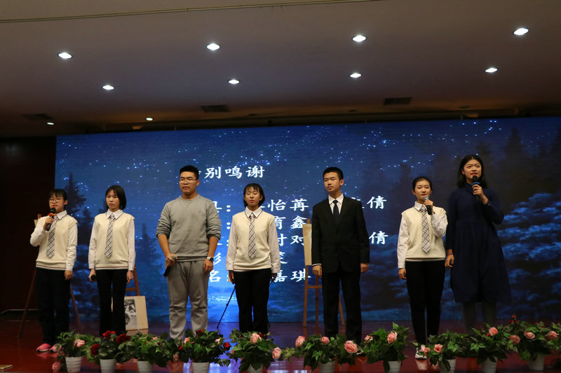 经过激烈角逐,来自高二1班王傲菲带来的朗诵的作品《最后一只藏羚羊》获得“经典诵读”第一名;高一8班陈佳玥、范瀚枢两位同学获得“心有灵犀”第一名;高二1班石卓文、周容敬、张可璇等同学带来的作品《不染》荣获“才艺表演”第一名;高一7班魏煜欣、怀子沫、姚培林等同学带来的原创小品《我的家乡》荣获“话剧春秋”第一名。董蒋睿希、贾周驰、孙宏翊、景婉仪四位同学荣获本次大赛“优秀主持人”称号。