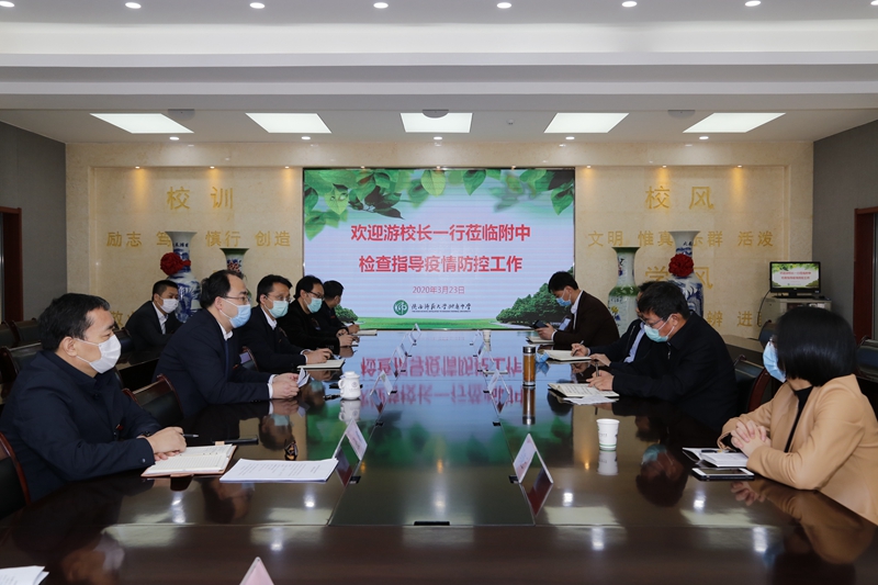 3月23日上午,陕西师范大学校长、党委副书记游旭群,党委副书记卢胜利,党委常委、宣传部部长马晓云,学校办公室主任辛峰一行莅临我校检查指导开学准备工作。
