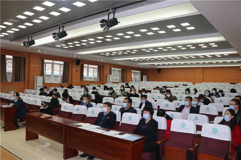 3月27日下午,我校在科技楼一层报告厅举行2020年春季开学高三年级教师疫情防控工作培训会,就高三年级复课前疫情防控和教育教学相关工作进行安排部署。我校校长冯军,副校长张帆、郭胜、高丽文,以及部分中层领导和全体高三教师参加了培训会。