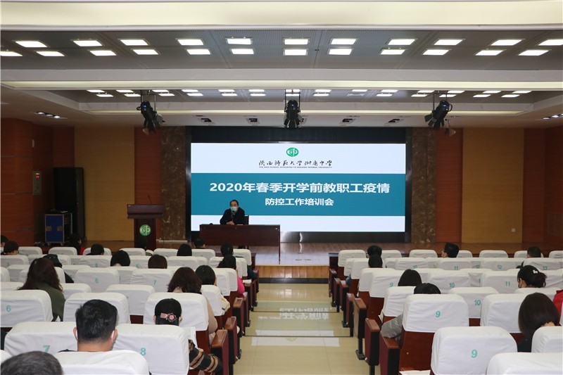 4月3日下午,我校在致远楼一层报告厅举行2020年春季开学初三年级教师疫情防控工作培训会,安排部署初三年级复课前疫情防控和教育教学相关工作。我校校长冯军,副校长张帆、郭胜、高丽文,以及部分中层领导和全体初三教师参加了培训会。