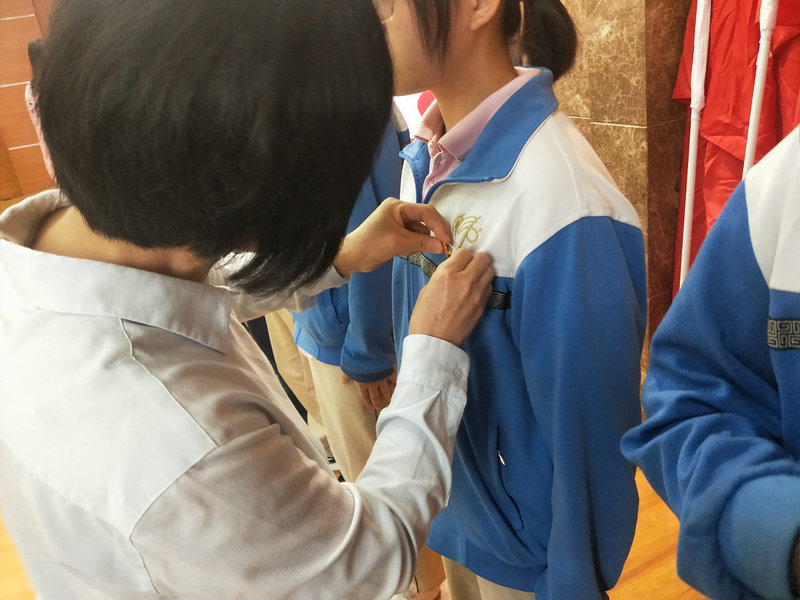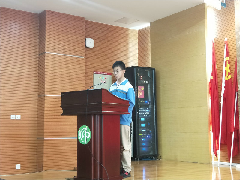 初三11班荣一恒、高三6班雷晓妍同学代表新团员发言。他们表示要坚定信念、志存高远、奋发图强、不断进步,不忘初心跟党走,做一名合格的共青团员。