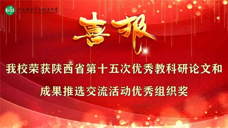 12月,全省第十五次优秀教科研论文和成果推选交流活动获奖作品公布,我校80项作品喜获省级奖励,其中一等奖23项,二等奖35项,三等奖22项,同时我校被授予“优秀组织奖”。8月底公布的“西安市2019年度教育教学成果评选活动”中,我校教师共获一等奖14项,二等奖11项,三等奖10项。此外,在陕西省教育科学“十三五”规划 2020年度课题申报中,我校九项课题获批立项。