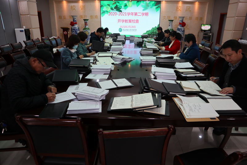 2021年2月28日上午8:00,本学期第一次教研组长会议暨本学期教案检查工作会在我校崇是楼五层小会议室召开,高丽文副校长、教务处张元芳主任、张锦川副主任、教研室董翼主任及全体教研组长参加了本次会议。