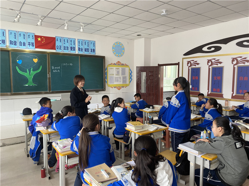 与此同时,为有效完成对各送教学校“三科”教材使用情况和教师教学能力水平的摸底和评估,充分检验前期培训的效果,4月18日至22日,教研室还选派李倩、李梦和丁伟三位教师和语文组退休教师张可伦,在师大教师干部培训学院原书记李宗嗣的带领下,远赴内蒙古鄂尔多斯市,入校指导各民族学校的“三科”教学情况。