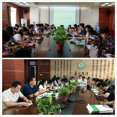 高中部“优秀学生培养”的研讨会由教务处张元芳主任主持,高中实验班全体任课教师参加了此次会议。张元芳主任强调了新高考背景下优秀学生培养的重要性和迫切性,2018届年级组长董翼,实验班班主任张锦川和李娜三位老师就年级管理经验和班级管理经验做了精彩发言,并结合具体事例提出关注学生成绩、心理变化,家校通力合作分工,密切研究高考动态等工作重点。最后2019届年级组长符洁对高三的教育教学工作较为全面的规划和安排。