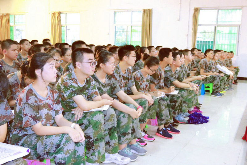 2018年9月5日上午,我校政教主任权小红老师在“陕西省国防教育培训基地”为高2021届全体新生进行了题为“高中将决定你的一生”的入学教育,我校及分校两位年级组长师家庆老师和刘建玲老师、11位班主任及全体新生参加了此次培训。