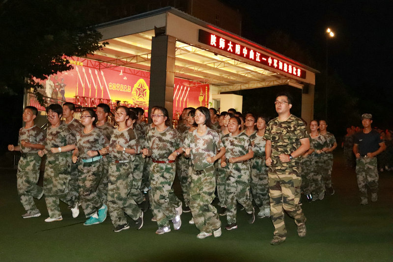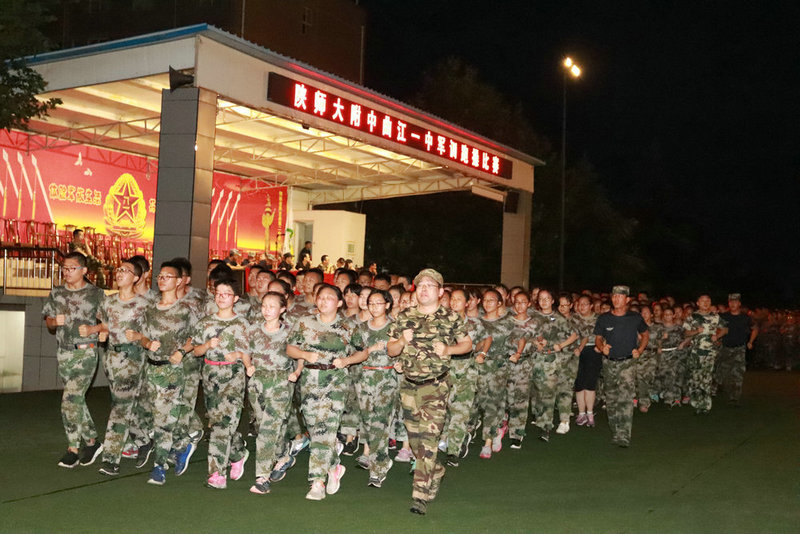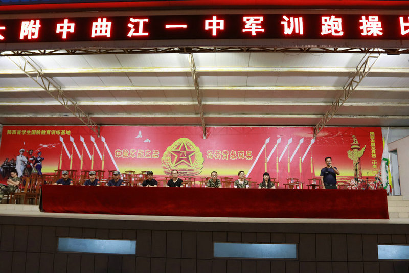 2018年9月5日晚,陕西师大附中、附中分校、附中国际部、曲江一中近千余名高一新生在周至国防教育基地进行了“军训跑操”比赛,整齐响亮的口号声响彻天空,附中政教处主任权小红老师、附中分校教务处副主任兼分校高一年级组长刘建玲老师、附中高一年级组长师家庆老师、附中国际部杜超老师、曲江一中高一年级组长董锋老师以及基地四名教官担任了此次比赛的评委。