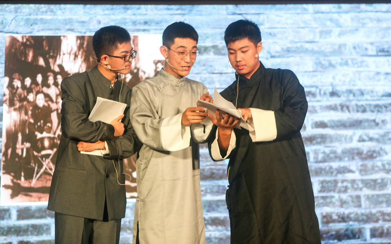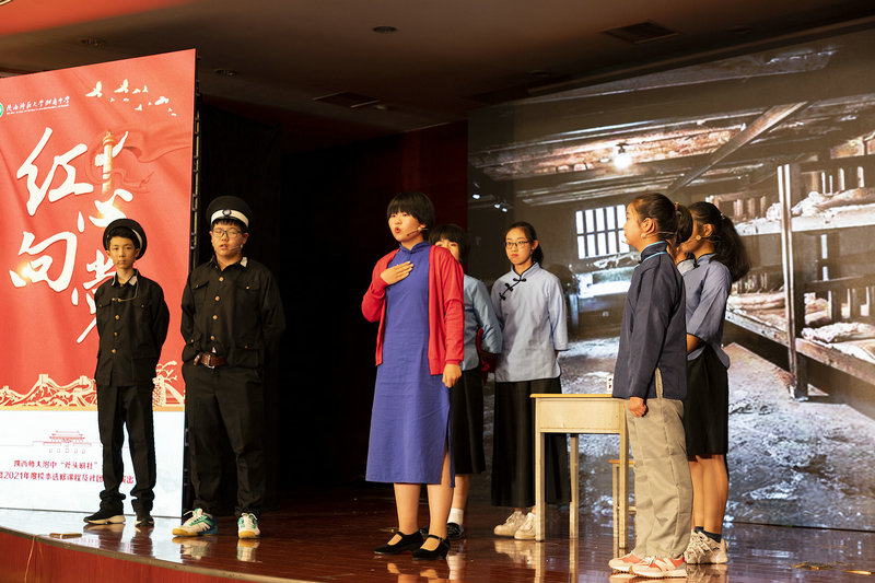 活动在我校“斧头剧社”第一部历史题材话剧《一曲悲歌憾民心》的公演中拉开序幕。该剧以张寒晖在陕西省立二中(陕西师大附中前身)的教育教学活动为主线,追寻烈士革命足迹,通过张寒晖老师给学生授课,关心启迪民众、创作《松花江上》等剧情,塑造以张寒晖为代表的一代附中教师形象,也塑造了一个热爱祖国,热爱教育事业,拯救人民于水火之中的“国士”形象。我校“斧头剧社”成员在陕西师范大学李晨子老师、我校语文组杨梅老师的指导下,深情演绎,将大家带入到那个风起云涌的年代,让大家充分感受到张寒晖的人格魅力和我校的革命传统,真切表达了附中师生对寒晖精神的深深敬意、对建党百年的浓厚情怀。