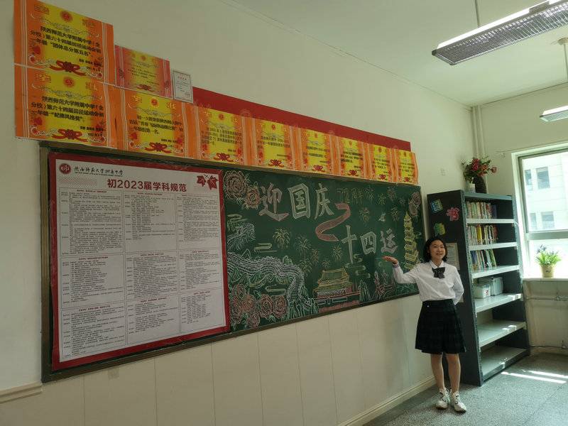 国庆前夕,47个参赛班级紧紧围绕着“迎国庆”主题精心布置黑板报,在各班班主任的指导下,大家认真查阅相关资料,充分发挥自己的想象力和团结合作的精神,以黑板为主阵地,展示全体师生的爱国情怀。各班设计的黑板报主题贴切、内容充实、构思新颖、画面美观、文字优美、色彩和谐,充分展现了我校师生积极向上的精神风貌,营造了浓郁的校园文化氛围。随后我校政教处鲍青青副主任、符洁副主任、音美组薛琪、任小红、党立敏老师以及部分年级组长和学生会代表担任此次比赛的评委,各班板报讲解员分别从板报的整体观感、刊头设计、版面布局、板报内容、创意构思等几个方面对参赛作品进行了全方位的介绍,师生评委最终评选出各年级获奖作品。