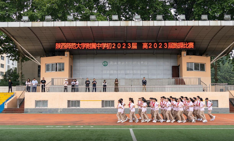 十月初,我校政教处、体育组在操场举行了全校各个年级的跑操比赛,比赛过程中,各班队伍整齐划一、士气高昂、动作规范、口号响亮,充分展现着我校学子斗志昂扬的精神风貌,评委们分别从指挥协调、口号力度、步伐动作、精神状态等方面进行综合评分。