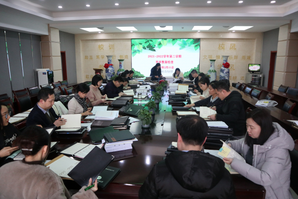 2022年2月15日14点30分,本学期第一次教学管理工作会议暨本学期教案检查工作在我校崇是楼五层大会议室召开,高丽文副校长、教务处张元芳主任、张锦川副主任、陈德裕副主任、教研室董翼主任、我校教学督导及全体教研组长、学科组长参加了本次会议。