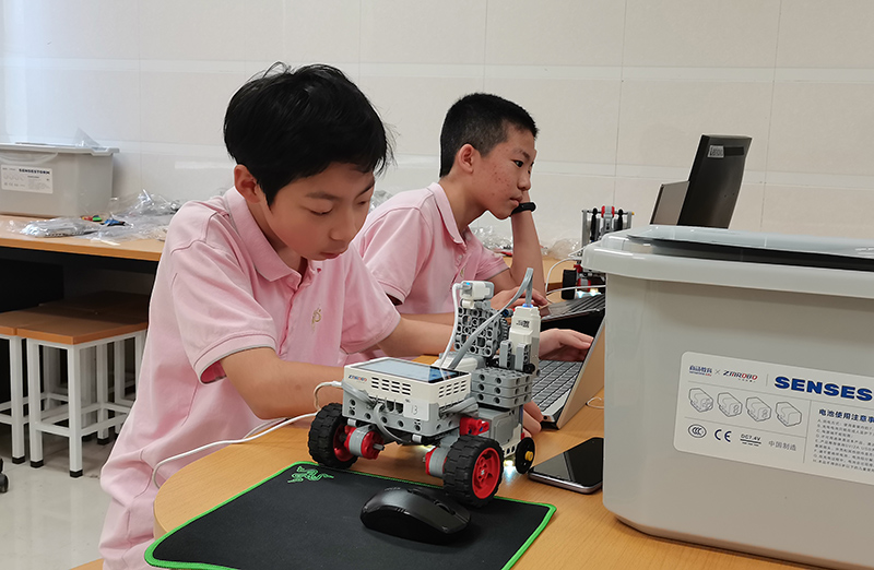 为提高学生信息素养和实践能力,设计运动功能类机器人一直是我校科创中心为起始年级开设的选修课程内容之一,在机器人研究方面,科创中心取得了诸多成果,设计制造了包括农业机器人、测绘地图机器人、医疗机器人等科创成果。