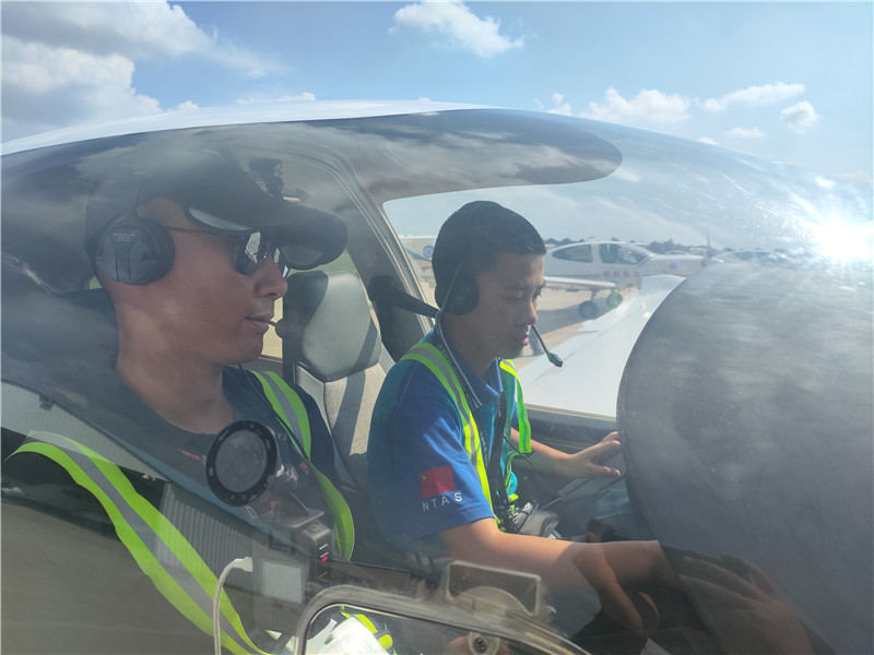 在完成座舱实习、徒步演练等地面阶段教学后,我校海航学子先后通过模拟飞行考核,升空进行15个小时的实装飞行训练。其中模拟飞行使用高仿真模拟器进行起落和空域模拟飞行训练,实装飞行使用钻石DA-40型飞机组训,主要进行起飞和着陆、平飞和上升下滑、水平转弯和盘旋、俯冲和跃升等动作练习。