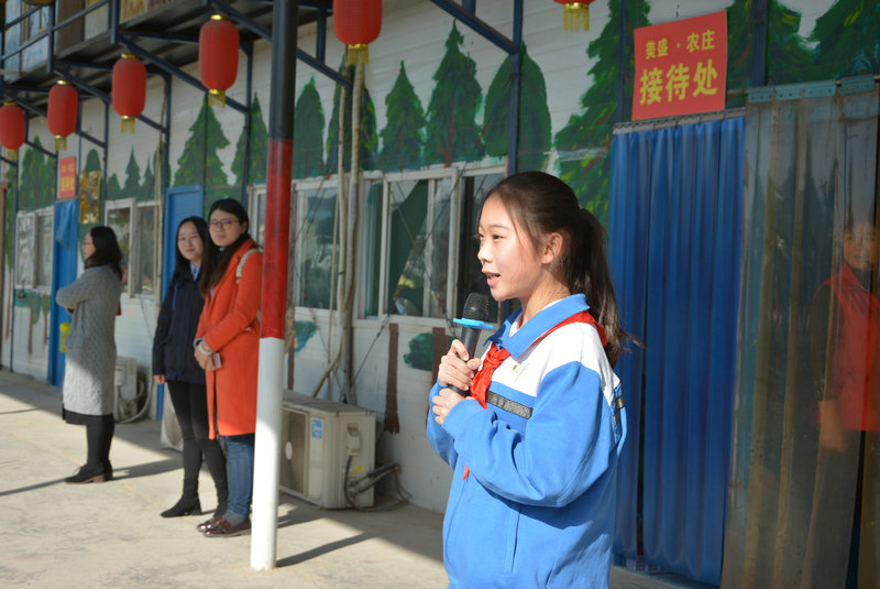 “雁塔脚下,曲江池畔,坐落着我们美丽的校园……”在泾阳绿优农业基地飘扬着的全体同学齐唱的校歌声正式拉开了此次研学活动的序幕,年级组长王芳老师致开幕词,政教处鲍青青副主任发表动员讲话,她希望通过这次研学,同学们可以感受现代农业及大自然的魅力,学习到基本的动物、蔬菜科普知识,真正做到一路行走、一路学习、一路成长、一路收获;学生代表初一九班黄子雯同学也进行了热情洋溢的主题发言。