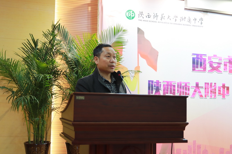 我校校长冯军致开幕词。冯校长首先对与会的各位领导、专家、老师的到来表示热烈地欢迎,他表示“名校+”工程校本研修培训活动在我校举行给我校教师提供了一次近距离学习交流的机会,也是陕西师大附中作为省级示范性高中履行自己责任、义务,为促进区域基础教育均衡发展做出努力的重要实践行为。我校将以最大的诚意和决心,与四十五中,倾力合作,确定工作方向和发展重点,扎实推进工作,促进两校深度融合,实现教育教学质量的共同提升。