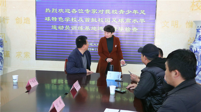 会上,冯军校长首先欢迎督导检查小组的到来,欢迎各位专家对我校足球工作进行督导检查。随后,冯校长就我校的基本情况及足球特色学校和高水平运动员训练基地的工作情况进行了介绍。我校负责足球工作的刘璐主任就附中足球工作情况进行了详细的汇报,通过文字汇报和PPT展示相结合的方式,对我校足球教育的发展历程、组织领导、专业管理、规章制度、特色品牌建设、师资力量、课程设置、获奖情况进行了详细的汇报。督导组专家认真听取了我校的工作汇报,对照青少年足球特色学校和校园足球高水平运动员训练基地督导专项检查的具体要求,通过仔细询问,认真检查,进一步了解附中足球工作的发展情况,并对今后的发展方向进行了交流与探讨。各位检查组专家对我校的足球教育工作表示充分的肯定,也对我校近年来在足球教育方面所取得的成绩给予了高度的赞赏,希望我校再接再厉,为陕西的足球事业培养出更多、更好的优质人才而不懈努力。