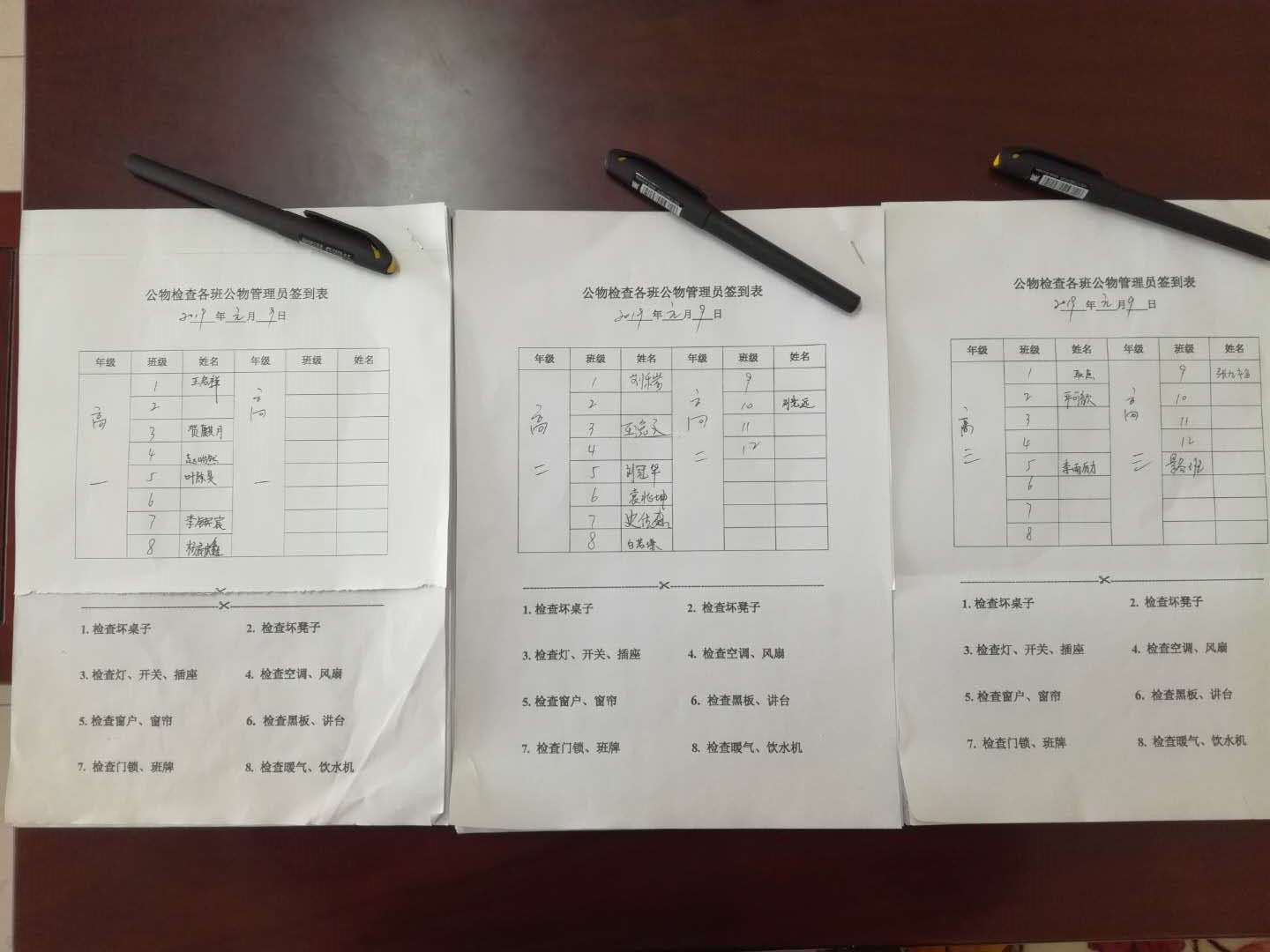 1月8日至9日,在各年级组长、班主任老师的支持下,总务处利用两个中午时间(12:30-13:10),由三名老师带队,分别组织初、高中各班公物管理员对全校70个班级的公物进行了检查。