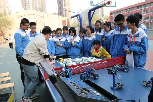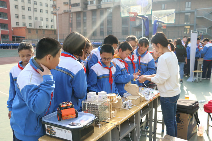 2019年4月1下午,附中分校初一年级和高一年级共600余人在校园里感受了一场智能科技盛宴。