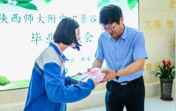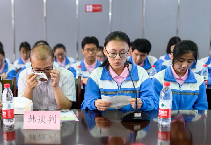 随后,“景谷班”教师代表韩谈判老师发言,韩老师与大家一起回顾了两年学习生活中的酸、甜、苦、辣,韩老师真诚质朴的语言中流露着对“景谷班”全体学生无限的爱与不舍,令在场的师生动容。“景谷班”学生代表李润瑜做了简短的发言,她代表“景谷班”全体学生对陕西师范大学及附属中学的领导和老师表示诚挚的感谢,她表示,全体“景谷班”同学会像圆规一样,虽然脚在动,但对附中的感恩、热爱之心永远不会变,“景谷班”的全体同学将会继续努力、拼搏高考,为此次精准扶贫项目画下完美无悔的句点。