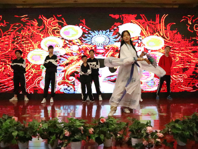 最后,我校部分社团为大家带来了一场精彩的社团汇报演出,朗诵与播音主持社团带来的作品《橘颂》及《纪念党的十九大·五年抒怀》拉开了该环节的序幕,同学们深情的诵读:“继往开来的中国梦啊,将两个一百年的光荣时刻与民族复兴大业精准地契合在一起”充分地展现了大家昂扬向上的精神风貌;街舞社团带来的舞蹈《我的新衣》、原啦啦操社团带来的《知否,应是……》、健身社团带来的体育表演《体能操》表演形式风格各异,展现了我校学生的青春活力和深厚的艺术功底;汉服社团带来的朗诵与舞蹈《汉家衣裳》、博通社团带来的中国古今服饰展示《衣袂翩跹 踏史而来》向大家展示了华夏传统文化,重现了华夏传统礼仪与我国古今服饰的变化,意义非凡;嘹亮歌唱社团带来的歌曲《鹿be free》以时而婉转动人、时而激情澎湃的歌声,使得现场欢呼声不断;初2021届学生代表带来的舞蹈《送你一个长安》以优美的舞蹈动作、扎实的舞蹈功底赢得在场观众一致好评;服装设计与表演社团带来的服装设计展示秀《神采飞扬》将现场的气氛推向了高潮,一个个小模特们神采奕奕、步伐矫健、阳光自信,充分展现了我校学子积极向上、健康快乐的青春风采。