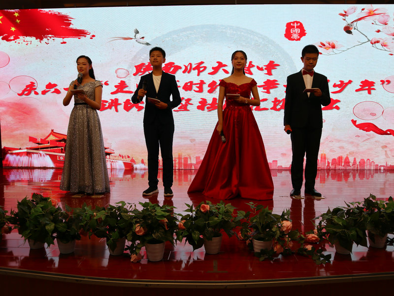 2019年5月31日下午,在第70个“六一儿童节”来临之际,我校团委组织的庆六一“走进新时代,争当好少年”演讲比赛 暨社团汇报演出活动在综合楼报告厅隆重举行,我校党委书记陈勇刚、政教处主任、团委书记权小红,特邀嘉宾西安第二聋哑学校团委书记杨亮、李晨老师和部分学生代表,陕西师范大学文学院研究生代表、王芳、师家庆、陈德裕、符洁四位年级组长以及初一年级全体班主任和学生、我校各社团成员参加了此次活动。