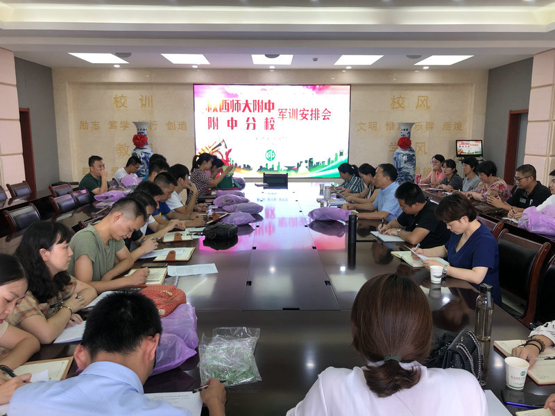 2019年8月19日下午,我校政教处在崇是楼五层大会议室召开陕西师大附中、附中分校高2022届军训准备会,会议由张帆副校长主持,政教处鲍青青副主任、索海峰副主任、符洁副主任、我校及分校两位年级组长和十三位班主任以及政教处全体干事参加了此次会议。